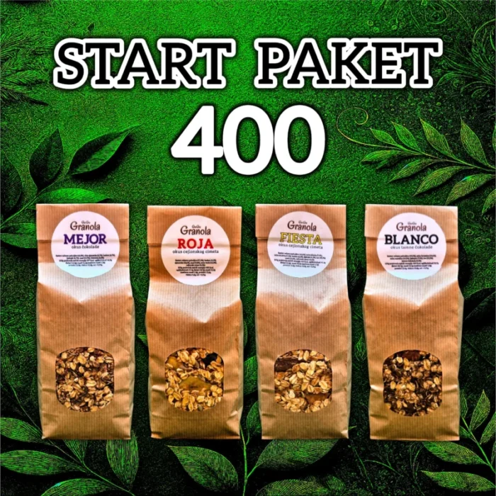 Umjesto da kupujemo svaku granolu posebno, uz ovaj i druge Start Pakete dobivamo tri različita okusa i četiri recepture u jednom paketu – uz povoljniju cijenu i manje rizika pri odabiru.